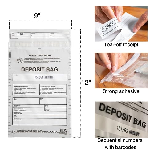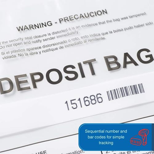 VERSATILE SECURE SOLUTION: Ideal for bank deposits, cash management, and transportation, these tamper-evident Deposit Bags provide versatile solutions. Each pack contains 100 bags with sequential numbers and barcodes for simple tracking.