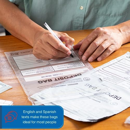 CONVENIENT WRITING AREA: The writable white area on the front of the bag is available in both English and Spanish. It’s not easily erasable, making these deposit bags extremely secure. They feature unique sequential numbers with barcodes on the bag, along with an easy-to-use tear-off receipt.