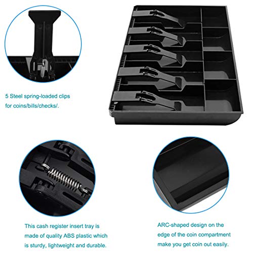Specification: Cash Money Tray Replacement 5 Bill/ 4 Coin Drawer Register Insert Tray Storage Case with Plastic Clip(5 Bill/4 Coin-Black)