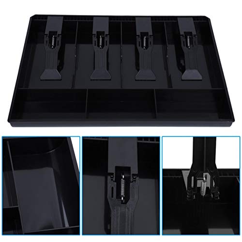 [Multiple Dividers Cash Register Drawer]: This cash drawer insert, cash drawer under counter and cash register drawer parts has been designed into 4 Bill Compartments and 3 Coin Compartments for easy organization of cash, coins, or other personal items; Cash of various values can be well classified with this removable coin compartment and cash drawers for square and money drawer for cash