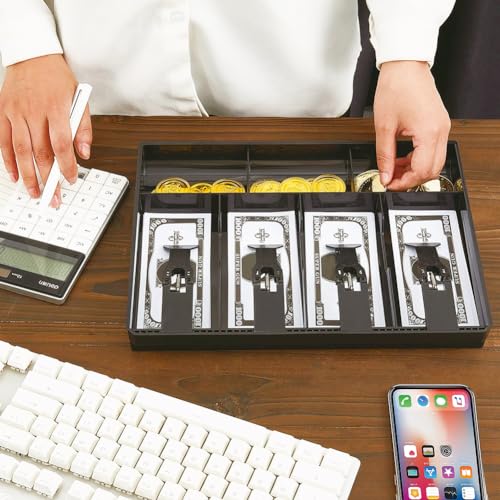 [Cash Tray for Cash Stuffing]: This cash tray for safe, organizer tray and cash drawer with slot is ideal for storing large denomination bills, numerous checks, or foreign currency; This cash drawer tray, cash tray for drawer and safe lock box for money is useful for managing cash and coin inventory and keeps currency bills organized