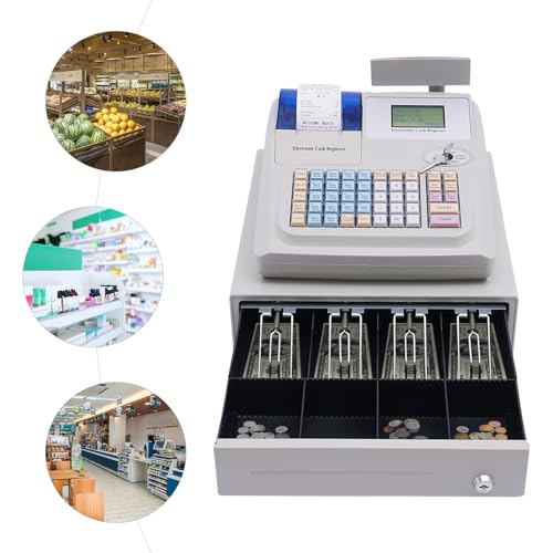 💵Easy Setup,Quick start – The cash register includes 36 departments, 10000 PLUs. Combine the functions of receipt thermal printing, dot-matrix LED consumption display screen and secure cash drawer in ONE. The cash register does not need to be assembled, and you can use it directly after receiving it. At the same time, we also provide a detailed manual, so that even green hand can quickly learn how to set up and operate it