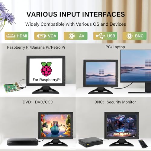 📺【COMPATIBILITY】:The monitor interface include VGA,HDMI,AV and USB touch. The LCD touchscreen monitor supports Windows 2000 SP4/XP,SP2/Vista,32 bits/Win7/LINUX/Win8/Win10 and connects to PC,laptop, camera and raspberry pi. There are built in speaker.It is good choice for display monitoring,POS retail ,restaurant,gym and bar.