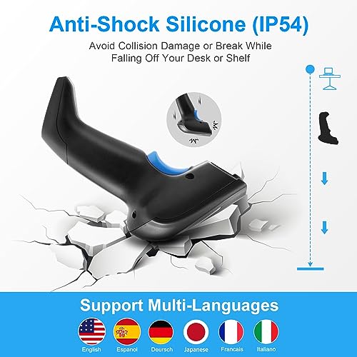 【Ergonomic Handle】This handheld scanner is made of shockproof TPU material, which is sturdy and durable. Its handle is ergonomically designed, making it comfortable to hold even for a long time.