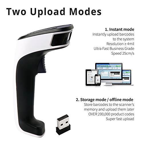 ★TRANSMISSION RANGE: This linear barcode scanner has a transmission range of up to 493 feet in an obstacle free environment and around 98 ft in environments with medium density obstacles. Transmission speed can be adjusted in order to scan barcodes faster.