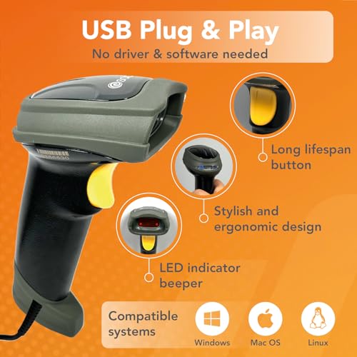 💻 EASY TO USE, PLUG AND PLAY Scanner Barcode – NO INSTALLATION REQUIRED. Whether you need barcode price scanner or versatile USB scanners, our solutions are efficient and hassle-free.