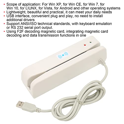 Specification: Lairun Credit Card Reader, Credit Card Skimmer Two Way Swiping Light Weight USB Interface for ID Authentication for Banking System for POS System
