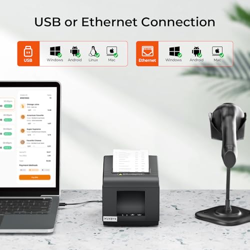 Specification: MUNBYN POS Receipt Printer P072, 80mm USB Receipt Printer Support Cash Drawer,Thermal Receipt Printer with Auto Cutter, USB Ethernet Interface for Windows/Android/Mac/Linux