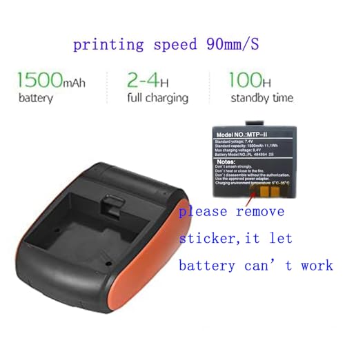 Specification: Receipt Printer 58mm, Wireless Bluetooth Portable Mini Thermal pos Printer,2 inch Pocket Ticket Bill iOS Android Invoice Printer for Small Business Retail Shop (Orange Color)