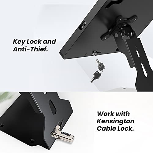 ➤ 【Anti-theft iPad Desk Mount】 – Key locked and take your device out easily with the key. Kensington cable lock under the counter. Access to volume and power button.