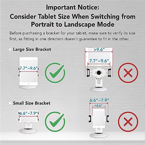👍 Wide Compatibility- Two size rubber padded bracket holders collectively fit 6″ – 13″ tablets or any gadgets with width or height measurement in the range of 6.6″-9.6″ (Please noticed that both two clips fit cases less than 0.5″ thickness), Perfect for mounting iPad Pro 12.9”, iPad Mini 7.9”, iPad Air 10.5”, iPad 9.7” or other Android
