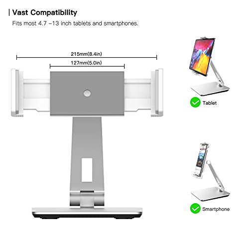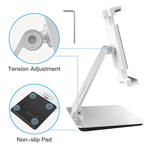 Specification: Tablet Stand, Adjustable Heavy Duty Aluminum Stand, 360° Swivel Foldable Holder for iPad, Samsung Tab, Kindle (4.7-13″), Design for Desk Kitchen Bedside Office POS Reception (Silver)
