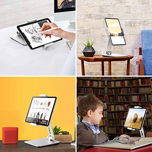 Tablet Stand, Adjustable Heavy Duty Aluminum Stand, 360° Swivel Foldable Holder for iPad, Samsung Tab, Kindle (4.7-13″), Design for Desk Kitchen Bedside Office POS Reception (Silver)